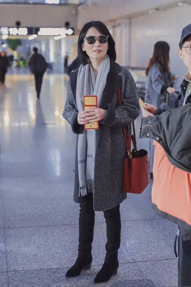 只能说俞飞鸿的过冬穿搭也是很难看的,简单的大衣配着短靴黑色紧身裤更是显出大长腿,虽然看着简单,但漫画腿是真的很抢镜呀,而且还优雅有气质,就是有种头重脚轻的感觉。