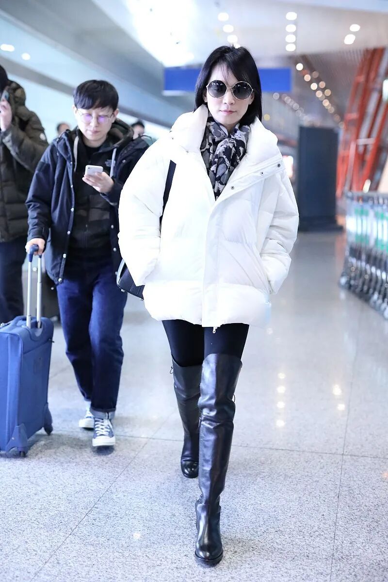 只能说女神的穿搭风格的确是真的有冬天的感觉,保暖又好看,长筒靴配着棉服,厚实保暖,看着简单却又显得年轻,关键是保养的好驾驭各种传达毫无压力才是最让人羡慕的呀,真的是实力碾压同龄人呢