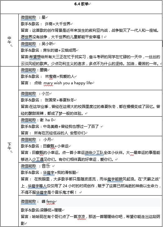 本期歌单就到这里,这也是这个学期最后一次点歌了,本学期的点歌活动到此暂停。小可爱们下个学期歌单萌等你来撩哦~期待与你们的相见