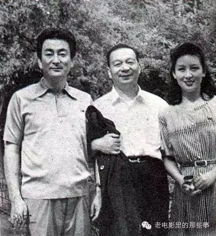 李秀明、于洋和朝鲜电影《摘苹果的时候》姐姐的扮演者郑美淑在一起