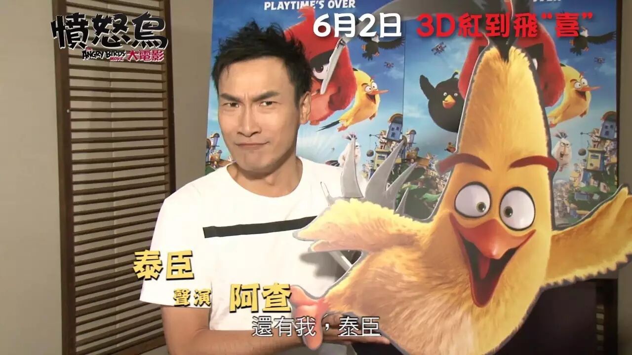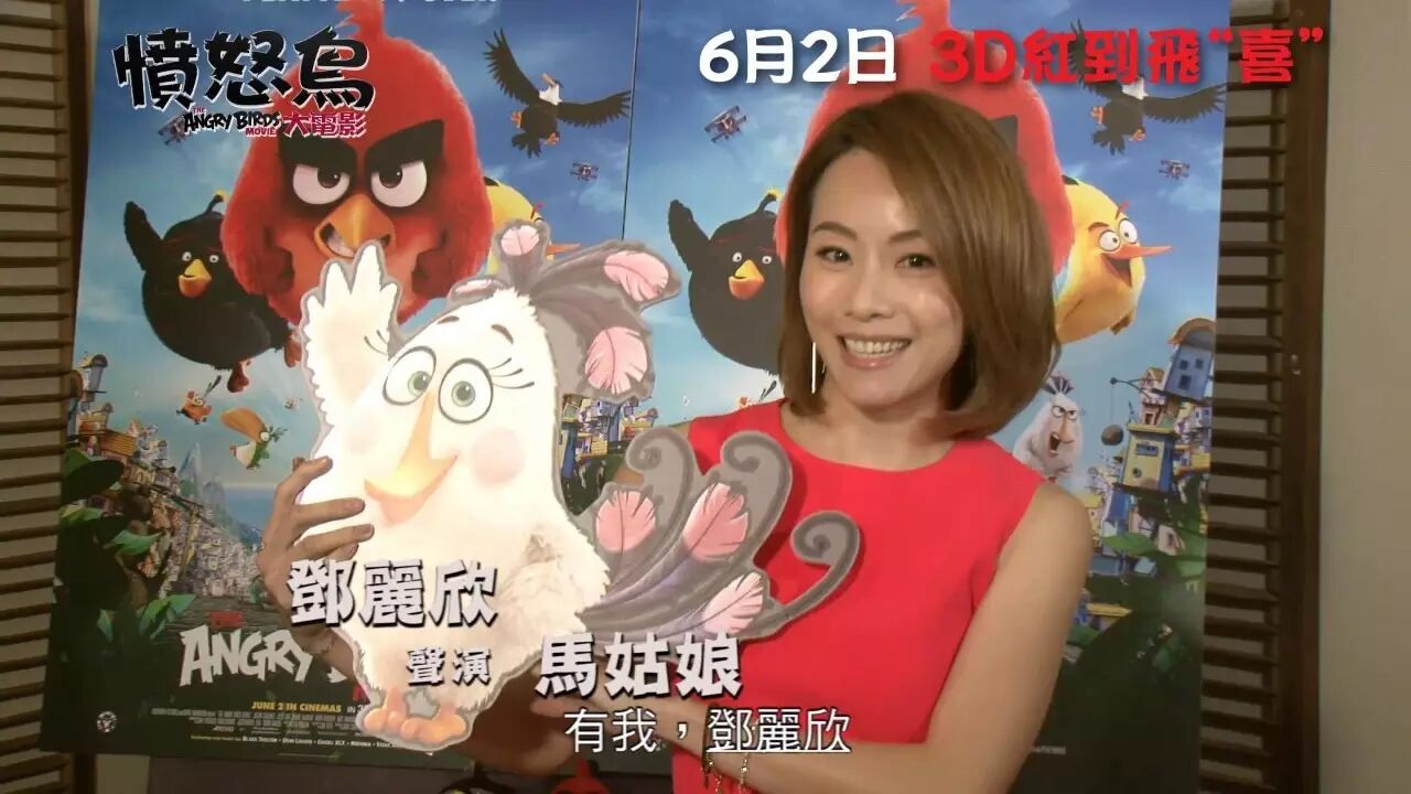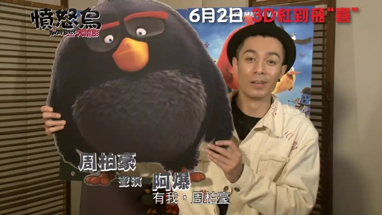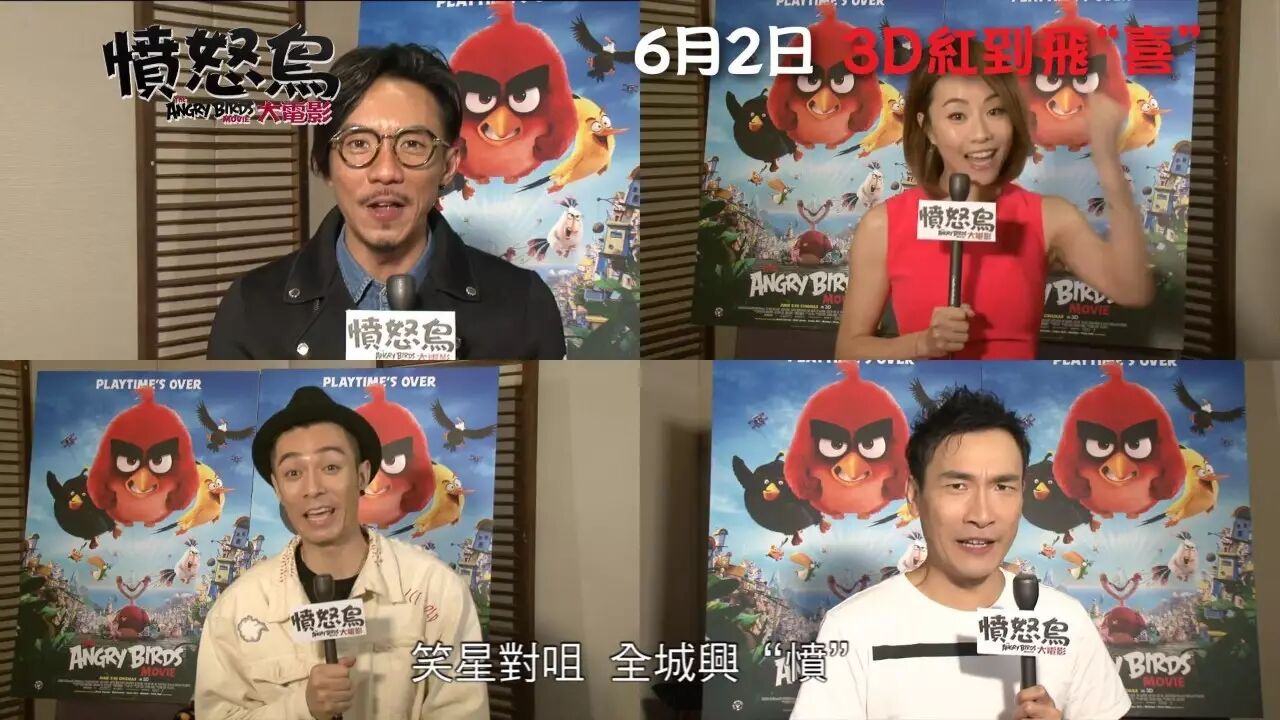 藍精靈》、《壞蛋掌門人》、《阿森一族大電影》強勁幕後班底打造3D電影《憤怒鳥大電 影》(The Angry Birds Movie),將於6月2日正式上映。今次憤怒鳥跳出遊戲,進軍大銀幕,一班雀仔一齊 奮起捍衛家園,擊退不請自來的綠色小豬!電影公司為粵語配音版找來四位人氣偶像張繼聰 、周柏豪、鄧麗欣(Stephy)及泰臣坐陣,四人鬥嘴鬥搞笑,保證觀眾笑到停不「鳥 」!