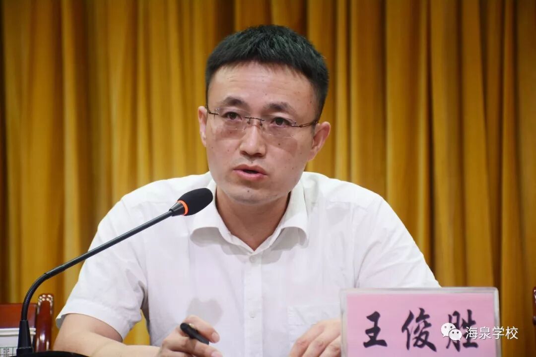 2018年9月6日19:00,海泉学校2018——2019学年开学工作大会在高中部实验楼四楼会议室拉开帷幕。本次会议由海泉学校校长王俊胜主持,出席本次会议的有海泉集团董事长王海泉、海泉学校督学张巧叶、海泉学校党支部书记王华民、海泉学校后勤处主任程俊学、海泉学校事务处主任程贵安、海泉学校高中部政教主任于传辉及全体教职员工参加了会议。