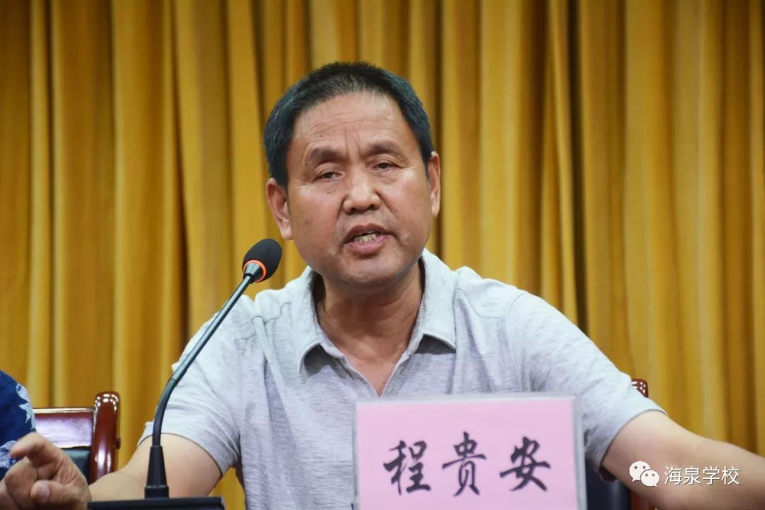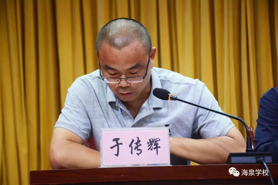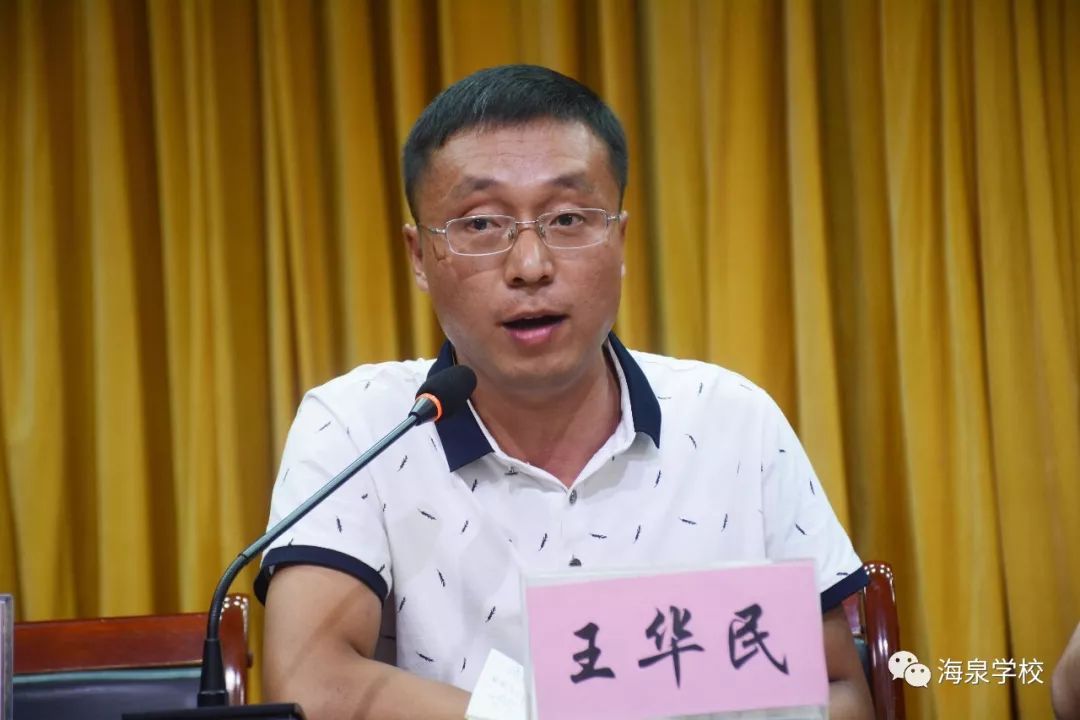 新学年伊始,他从制度、管理、落实三方面对学校工作进行总体部署。要求海泉学校各部门针对具体情况制定有针对性的制度,做到制度高于一切,制度面前人人平等;要求学校领导汲取教训,把安全工作放在首位,不安全宁可不作业,不安全宁可不授课;要求广大教职工把落实放在第一位,学生的成绩就是教师的水平,学生的成绩就是教师的能力;要求广大教职工珍惜海泉学校这个大平台,做到不传谣,不信谣,谣言止于智者,做到不利于学校的话不说,不利于学校的事不做。劝诫全体教职工远离陷阱理财,谨防上当受骗。