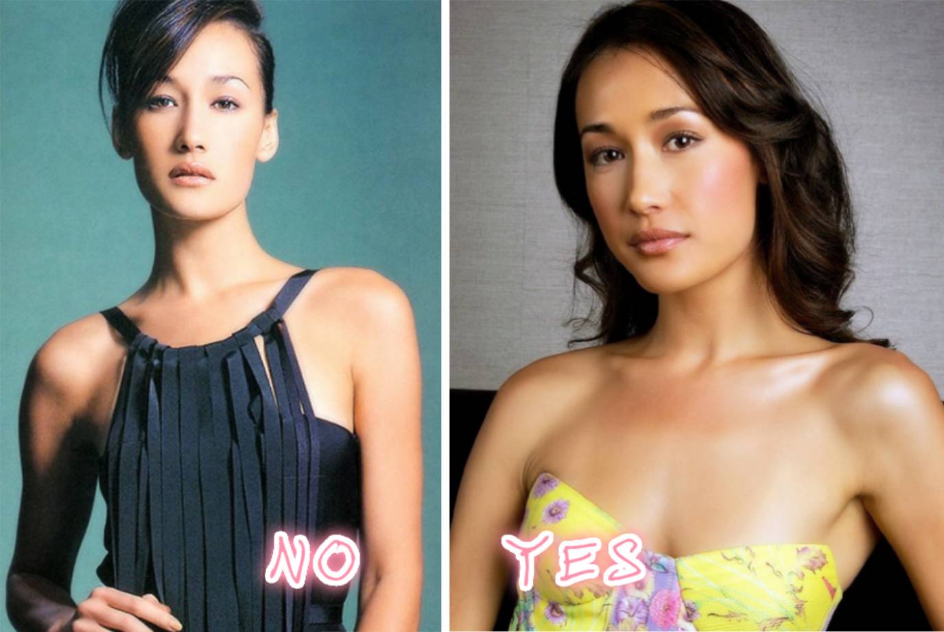 山根高的人,容易给人一种锐气、混血的感觉。左边的李嘉欣即使穿着古装也依旧洋气。