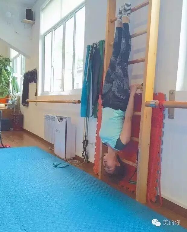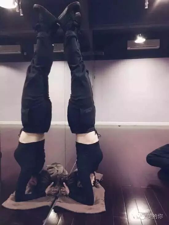 平时唱歌特别考验肺活量,so她也特别喜欢倒立