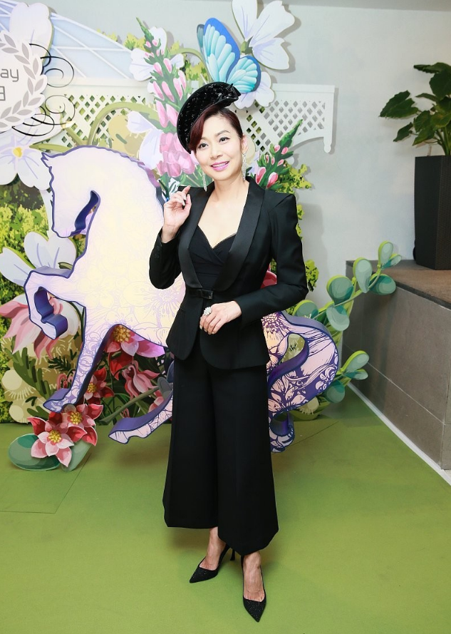 邝美云就选择了一件带有垫肩设计的西装做为外搭,提升造型层次感的同时,也更能突出成熟的女人味。