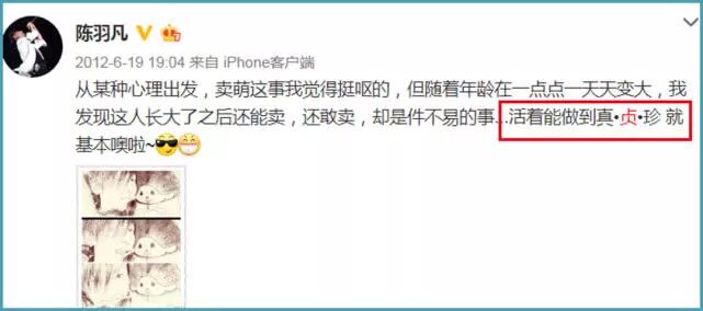 在2012年,陈羽凡的“甜蜜告白”是“活着能做到真贞珍就基本噢啦”。