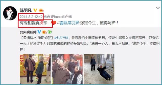 在2014年,有一条写着“有缘相爱真贞珍...❤️”的转发记录。