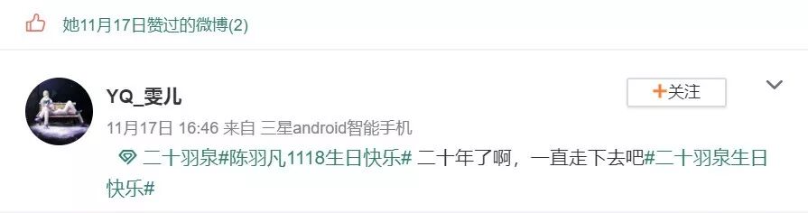 网友还扒出了疑似何时贞的微博,里面除了日常转发,还点赞了多条陈羽凡相关的微博。