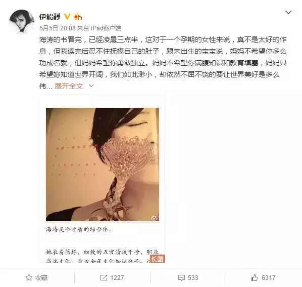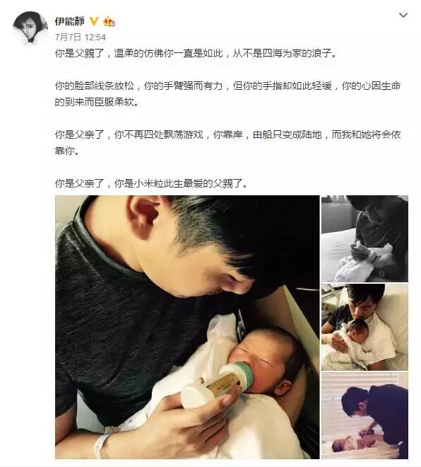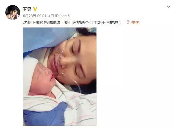 其实在小米粒出生当天,秦昊就在微博中贴出一张妻子伊能静与刚出生的女儿的合照