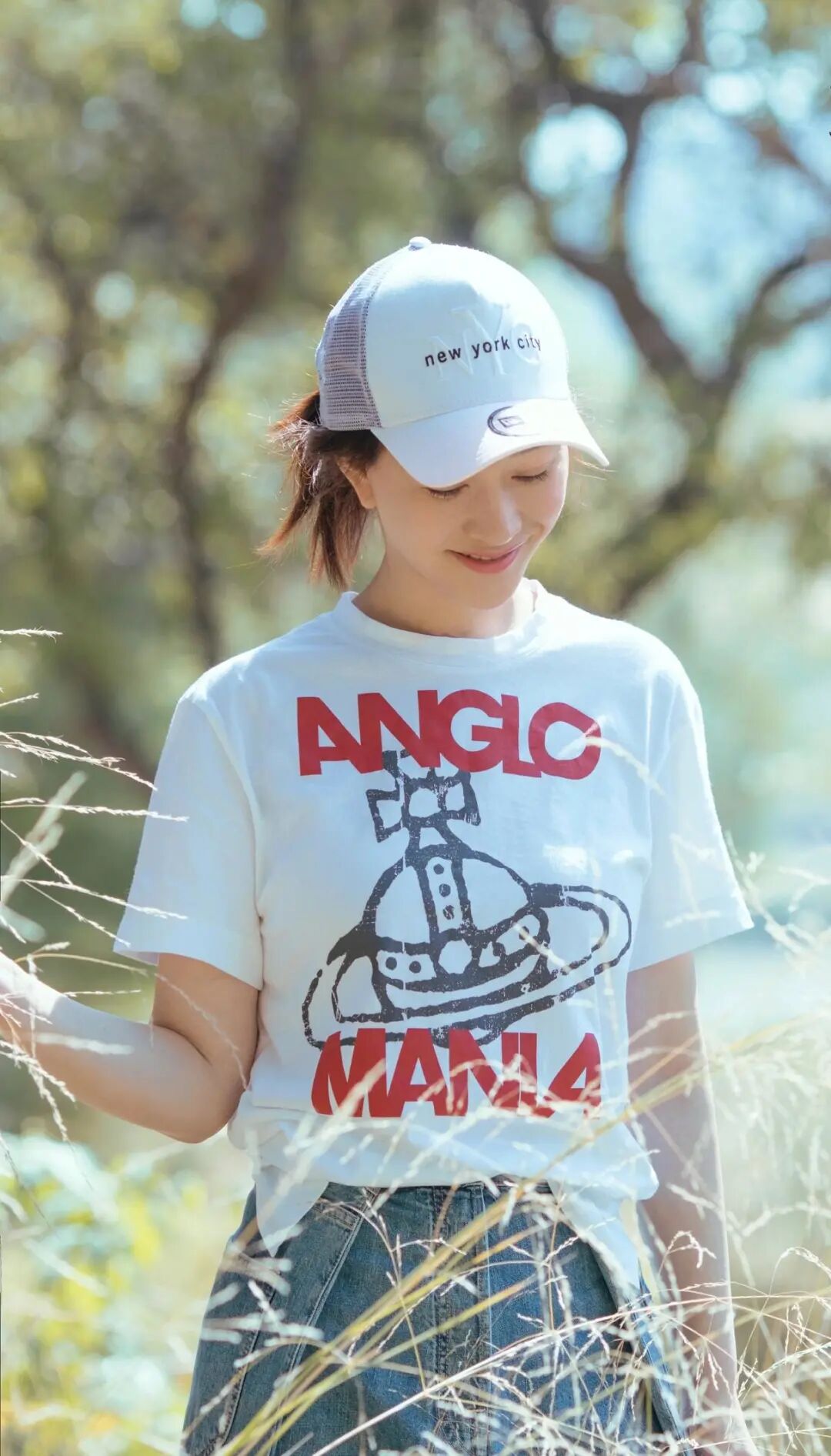 李小冉身穿白色基础款T恤,宽松的版型带来休闲的运动风,看起来非常舒适。T恤上印有Vivienne Westwood的黑色LOGO和醒目的红色字母,"朋克教母"的T恤自带青春气息,黑白红的经典配色百看不厌。李小冉搭配了一顶白色网眼棒球帽,防晒的同时,凹造型的能力也是一百分哦。