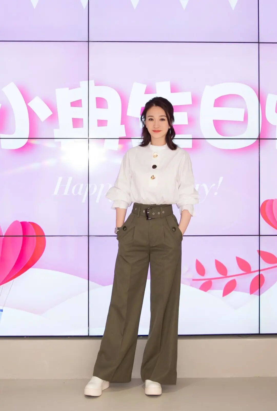 高腰+宽腰带的元素,李小冉在各种场合中都运用过,效果超级棒,自带熟女的飒爽和性感。在生日会上,李小冉选择了一件白色小立领长袖衬衫,花边袖带来温柔的女人味,胸前的彩金纽扣破解了白衬衫的单调。最叫人称赞的就是这条灰色高腰阔腿裤,廓形剪裁遮肉显瘦,同款宽腰带衬托出李小冉纤细的小蛮腰,不需要太华丽的装饰。