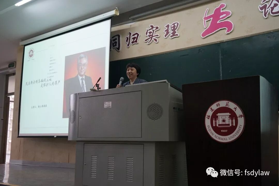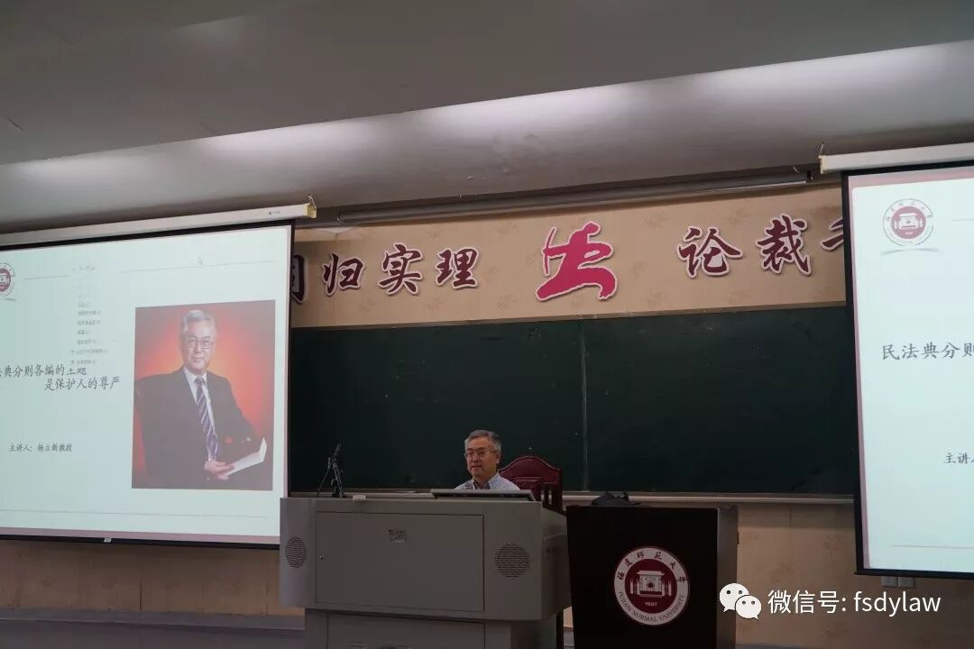 10月13日下午3点,中国人民大学法学院教授、福建师范大学兼职教授、著名法学家杨立新教授莅临我院开展题为“民法典分则各编的主题是保护人的尊严”的讲座。本场讲座由福建省法学会民商法研究会、福建师范大学法学院主办,法学院院长林旭霞教授主持,副院长杨垠红教授、副院长张莉教授等众多师生踊跃参加,观者如堵、座无虚席。