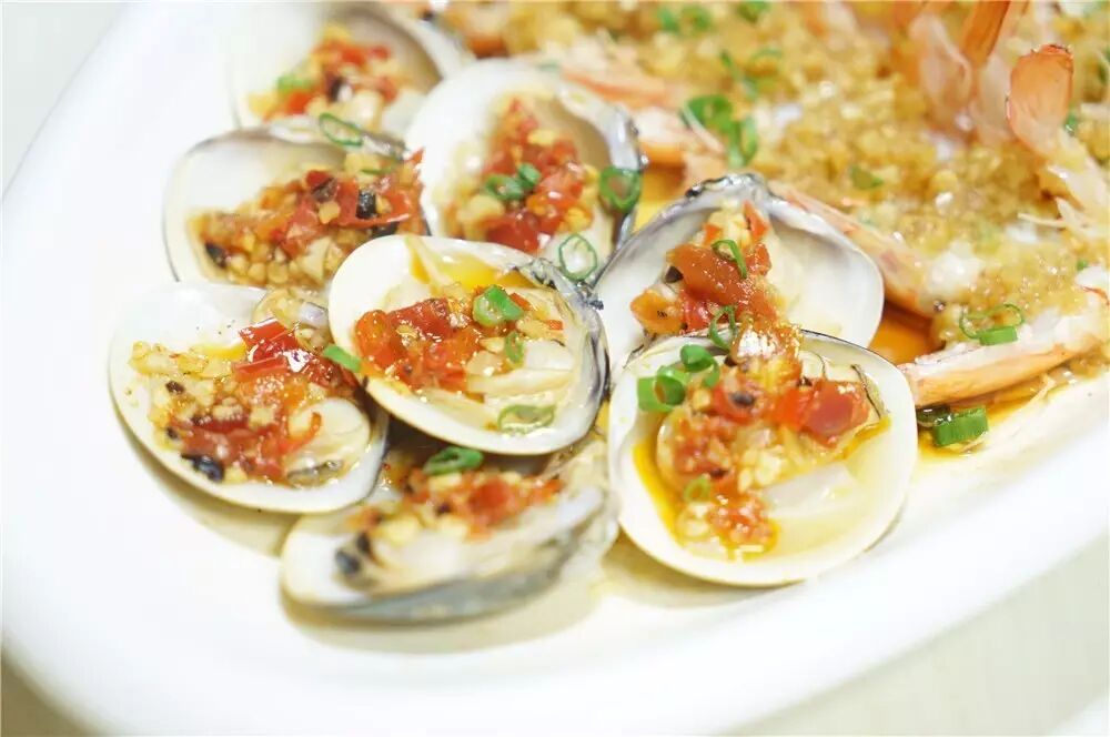 圣子王、贵妃蚌、沙虾三鲜齐下,再加上豆豉、蒜蓉、剁椒,味道极鲜甜!一碟同时满足你三个愿望