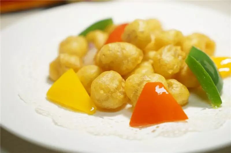 看起来像小时候五毛钱一包的卜卜星,但其实是咕噜肉,一咬下去油脂的香气溢满口腔,蘸酱吃更好吃!无论大人小孩都喜欢!