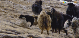 达娃为了生存冒险偷袭小牦牛而被牦牛母亲一次又一次用牛角顶达娃,最终负伤而去。