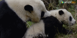 国宝大熊猫妈妈丫丫和女儿美美生活在四川山脉