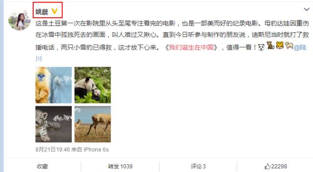 周迅的特色演绎、陆川导演、“DisneyNature(迪士尼自然)”出品、试映口碑零差评,首日排片仅占到了1.9%,不少明星、行业人士为之不平,并纷纷加入“为国宝求排片”行列,义气相挺!