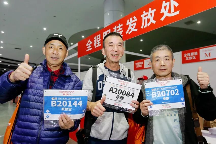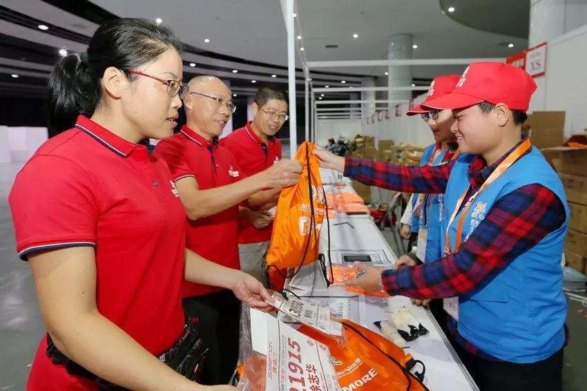 参赛选手们正领取号码牌和参赛服装