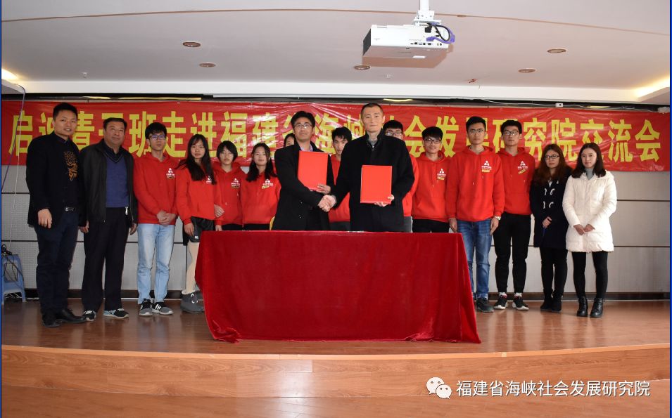 2018年2月4日,启迪数字学院执行院长洪振挺带领启迪青干班一行来到福建省海峡社会发展研究院出席交流会,与我院执行副院长陈少华、厦门海马生物科技公司董事长谢建强、海联商务大厦董事长江志民一同探讨交流两岸青年创新创业发展动态。