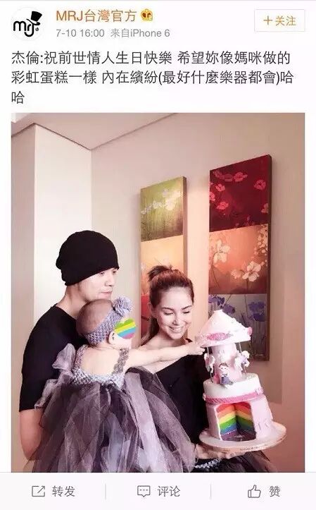 下午,周杰伦也上微博开心祝福,希望女儿什么乐器都会 ▼▼▼