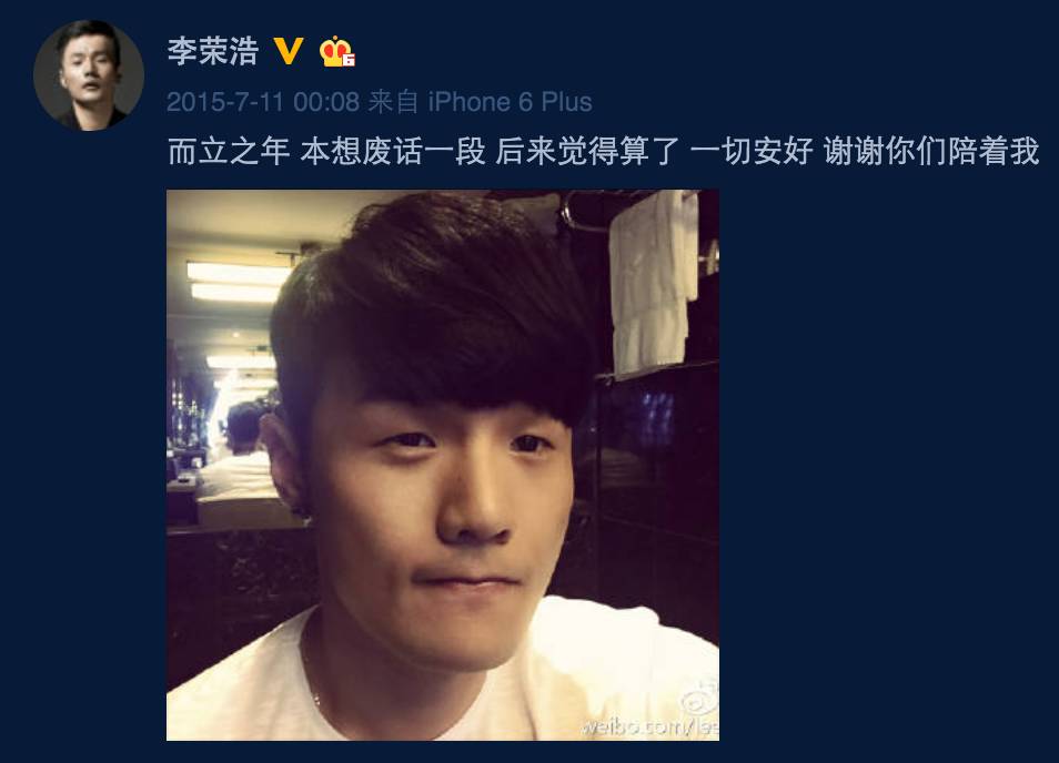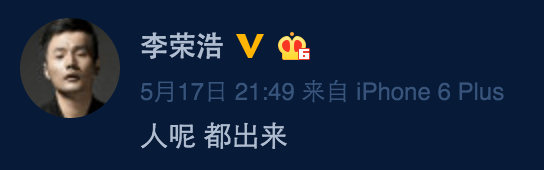 李荣浩几乎以第一名的速度,在微博上艾特了洪涛,一个多余的字都没有 ▼▼▼
