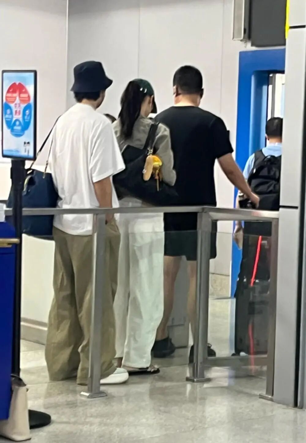 今年 2 月,井柏然跟着刘雯回了湖南永州老家。时隔 5 个月,他又陪刘雯回去了。湖南有网友在机场拍到两人同框,正排队登机。