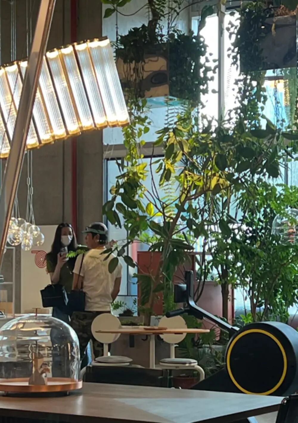 俩人从身高到穿衣风格都很搭。井柏然穿白色 T 恤,刘雯配白色长裤,一看就是用心搭过的情侣装。刘雯对镜头很敏感,发现有人拍,回头看了一眼,表情高冷带点疏离。井柏然只露出背影,183 的身高配着时尚穿搭,光看背影就知道是个帅哥。