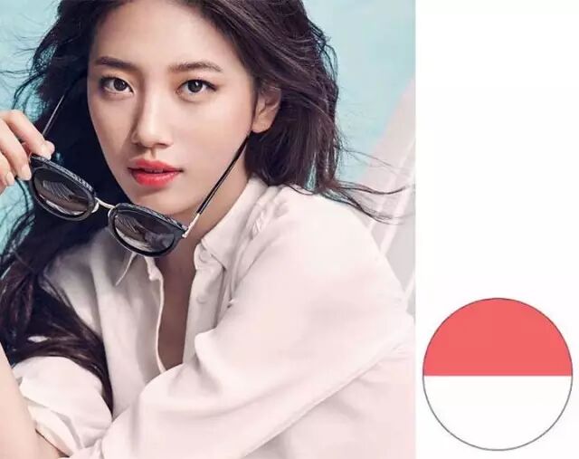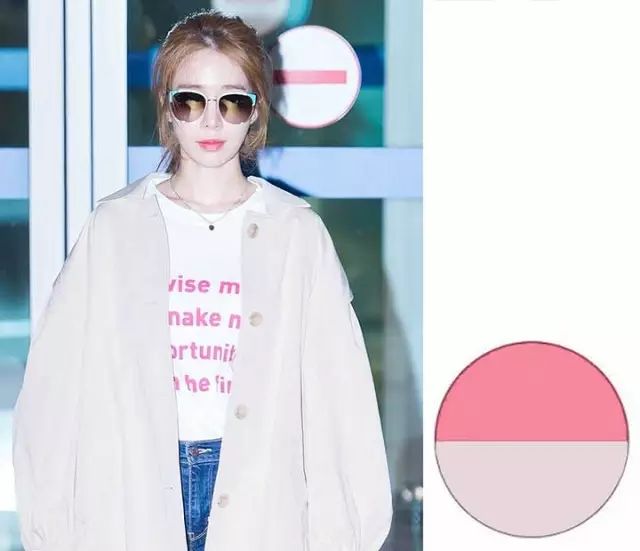 裸色衣服本身与我们的肤色相近,如果再涂不显色的唇膏就会像生病了一样。所以,要像泰熙欧尼那样搭一个有色差的颜色才行哦~