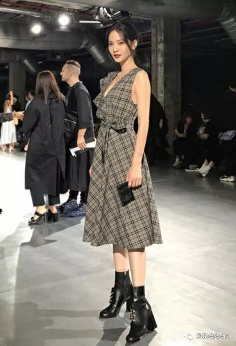 身高168的曾之乔身段份额极佳,个人气质也非常杰出,这件灰黑格纹深V无袖七分连衣裙,搭上黑色漆皮粗高跟靴,将头发随意束在脑后的曾之乔看起来气场十足。略厚的呢料带给人沉稳稳健的观感,其上灰黑的格纹和领口处的花瓣形褶皱规划则添了分少女气味;下身的黑色皮靴和深V等规划加剧了少许性感的滋味,却尺度得宜,非常带感。