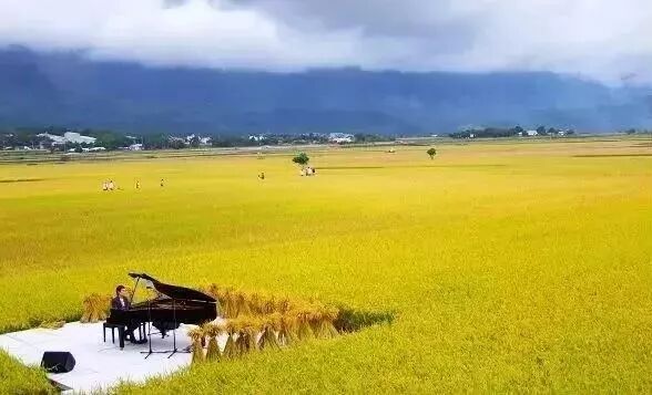 2009年秋收前,他们在金黄的稻田上,邀请钢琴王子陈冠宇做了一次钢琴演奏会。