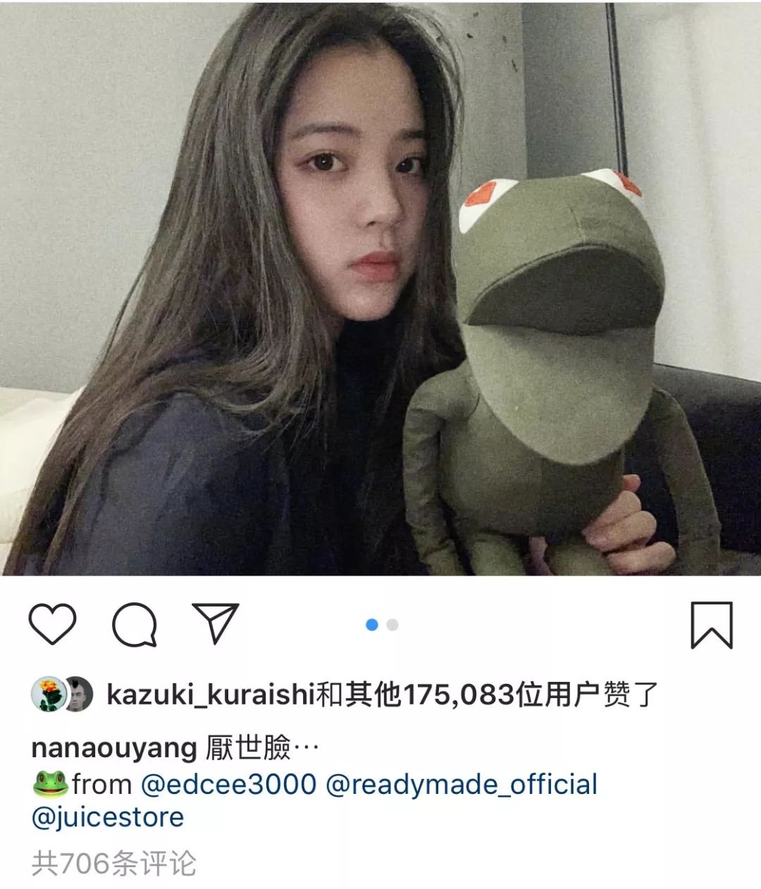 而欧阳娜娜虽然“高冷”到关注列表上只有区区4人(家人),但是这只 CLOT x READYMADE 青蛙布偶来看,就足以证明两人的关系确实不太一般。