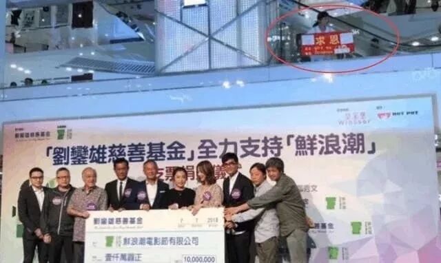 大合照时,在台后上层近扶手电梯位置,一位女子手持海报爬出栏杆,该海报上写有“求恩”、“古天乐”等字眼:“我和爸爸都有病,我身上有两个肿瘤、爸爸盆骨有事,我们身体每天都很痛、很痛,我以前在广州乞讨不到钱,所以今天特地来香港想向古天乐借。一百万左右应该够,我们会还。”