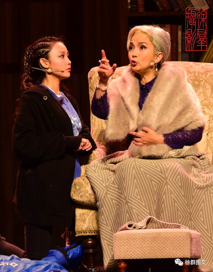 整出话剧只有4个角色。在2个小时左右的剧情里,吕丽萍扮演的一名人生阅历丰富、生活条件优越、心地善良,但空虚寂寞、常常被人误以为“毒舌”的海归老妪,用现代人司空见惯习以为常的各种时尚、幽默、滑稽、刻薄、冷凝、机智、俏皮、憨厚、搞怪等包容万象的语言,与孙海英扮演的性格憨厚的中年司机,自个疼爱又夹杂不屑的儿子,称得上少年老成的孙女,4个人一道,在有限的舞台空间,上演了一出精彩纷呈、极具戏剧张力又漫散人性辉光的哲理人伦情感大戏。
