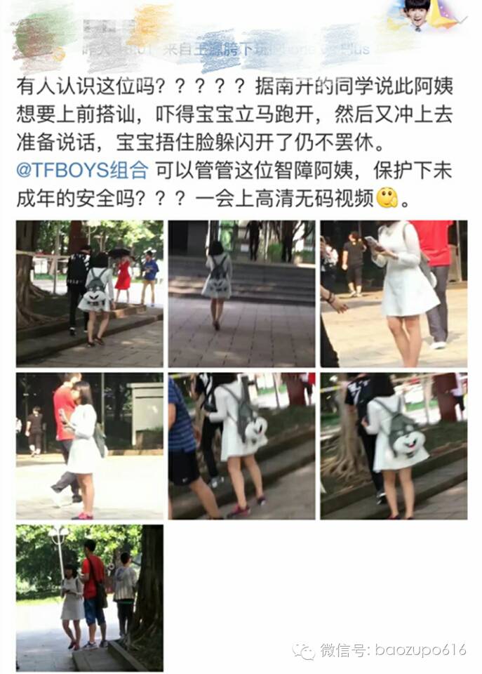 而就在今年6月中旬左右,人气组合TFBOYS王源也被私生跟了,当天是中考的首日,王源准时出现在学校门口,当王源走进校园时,一个穿白裙子的女子直接冲进校园,强行跟王源说话搭讪,一直追随他。