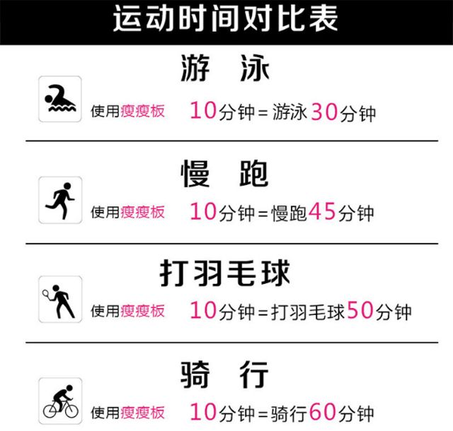使用10分钟就相当于游泳30分钟、慢跑45分钟、打羽毛50分钟、骑自行车60分钟,在同样的运动时间内,达到更有效的减脂效果。。。