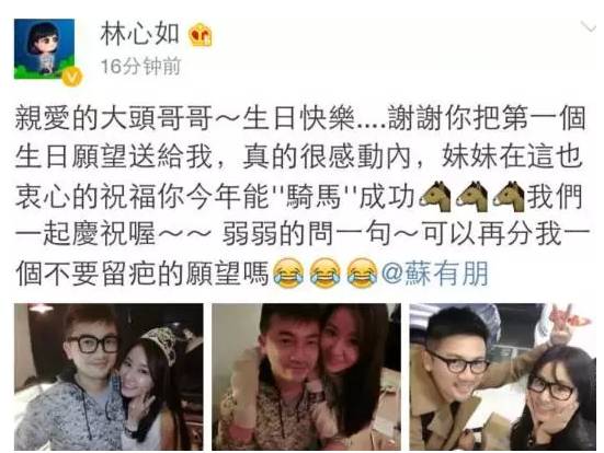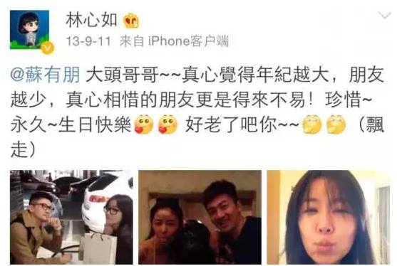 每到双方的生日,对方都必发微博,林心如说大头哥哥把他的第一个生日愿望送给自己,感动。苏有朋说Ruby我永远都支持你。