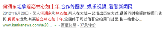 06年两人一起在内地拍摄《新三国》,何润东对媒体说,我暗恋林心如十年了。
