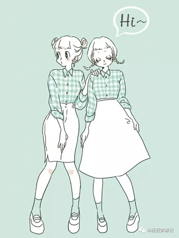 我们穿闺密装,互换衣裳,鞋子也买的一样,你裙子的款式我也爱上,你看的韩剧我也追着看,你爱的薛之谦,我会唱他的歌,同样的,王源的美图你也会同我一起流着口水称赞,我们一个像夏天一个像秋天,把我们的世界变成彩色的春天。