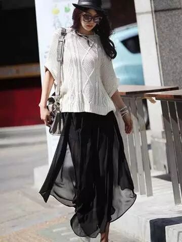 黑纱长裙是既宽松舒适又显瘦的利器。