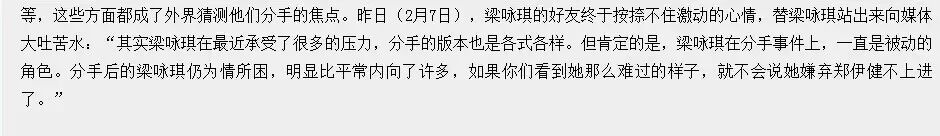 梁小姐也是当今“张馨予和她仗义的朋友”的模板。当年也有好友“忍不住替她说话”。说梁咏琪在分手这件事上一直是被动的。