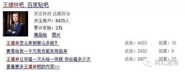 《华尔街日报》在“中国首富有副好歌喉”一文中写道,“中国企业家纷纷在年会上一展歌喉,这已成为一种中国特色的文化现象。”虽然纷纷在年会上一展歌喉,但火了王健林一个。各位感受一下百度王健林贴吧里关注度最高的几个帖子......