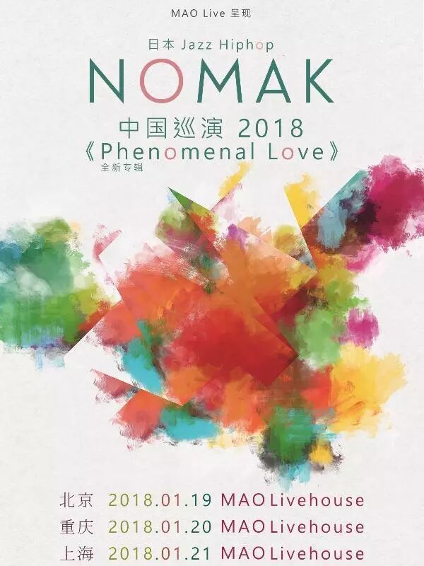 出道十年,NOMAK将再度来华,在这次巡演中,乐迷朋友们将首次现场欣赏到最新专辑《Phenomenal Love》的歌曲。这一次,他会以DJ/VJ的身份带着大自然走向音乐现场,演出中会加入即兴演奏环节,并且携手美国说唱艺术家Paulie Rhyme、美国音乐家Xandra Corpora进行助阵,赋予巡演更多期待和惊喜。
