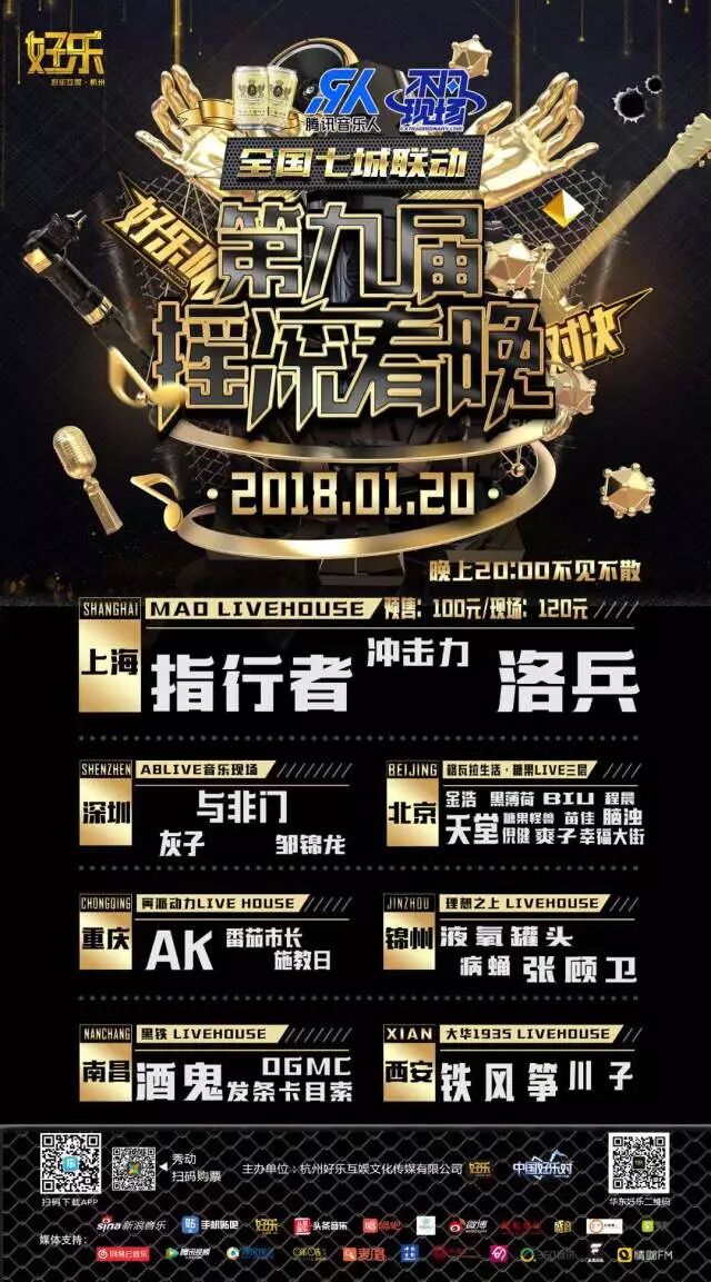 由天堂乐队发起一年一度的摇滚春晚已经成功举办八届,随着新年的临近,第九届摇滚春晚将与好乐携手举办。 与此同时,好乐队终极对决&摇滚春晚于2018年1月20分别于北京、西安、南昌、深圳、锦州、上海、重庆七城联动,隔空battle,首届以乐队对战形式开启的音乐擂台赛,打造一场盛况空前的LIVE盛宴,我在现场等你!
