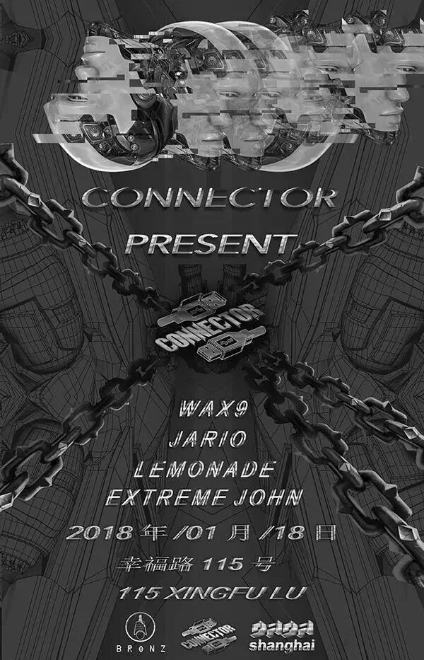 Connector是由来自上海的DJ音乐人Extreme John和来自南京的DJ音乐人羊鸣创立的电子乐派对组织。活跃在南京、上海、杭州,同时连接起bass music与techno。它的创立者既是音乐人也是视觉艺术家,在派对中更注重于用闪烁的怪诞视觉影像与先锋实验的音乐营造一个情绪化的紊乱空间。