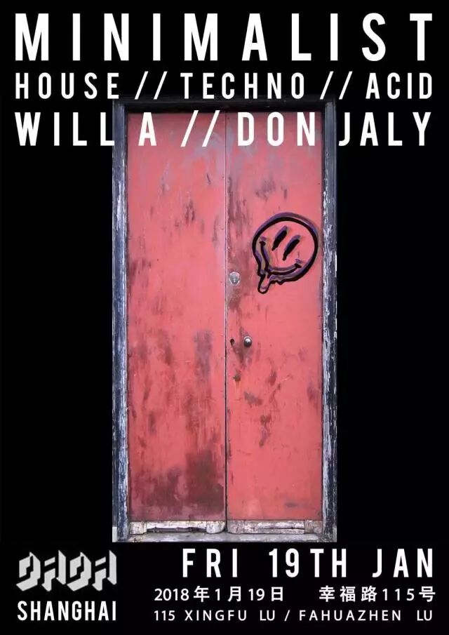 在新年除夕派对上极简主义的男孩们与Jozef K和Jigsaw一起在Dada举办了他们的第八年派对。 本月,Will A和Don Jaly B2B !!毫无疑问将会给大家带来另一个混合着House、Techno和Acid的精彩夜晚。不要忘记Minimalist的夜晚总是有着美妙的氛围。从晚上9点开始到很晚!免费入场!
