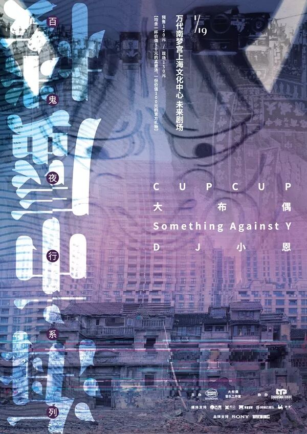 2018年1月19日晚20点30,四组来自上海的乐队/音乐人:CUPCUP、大布偶、Something Against Y、DJ小恩,联合万代南梦宫上海文化中心、CHARISMA TANUKI PRODUCTIONS,共同为大家呈现一场前所未有的无间断式主题演出。 当四组音乐人化身为传说中的鬼怪时,一个令人难以分辨现实与幻象的故事就此上演。整整两个半小时,雪女(CUPCUP)、酒吞童子(大布偶)、户隐红叶(Something Against Y)之间的爱恨情仇,将与时间一同穿梭在音乐与光影的缝隙中。