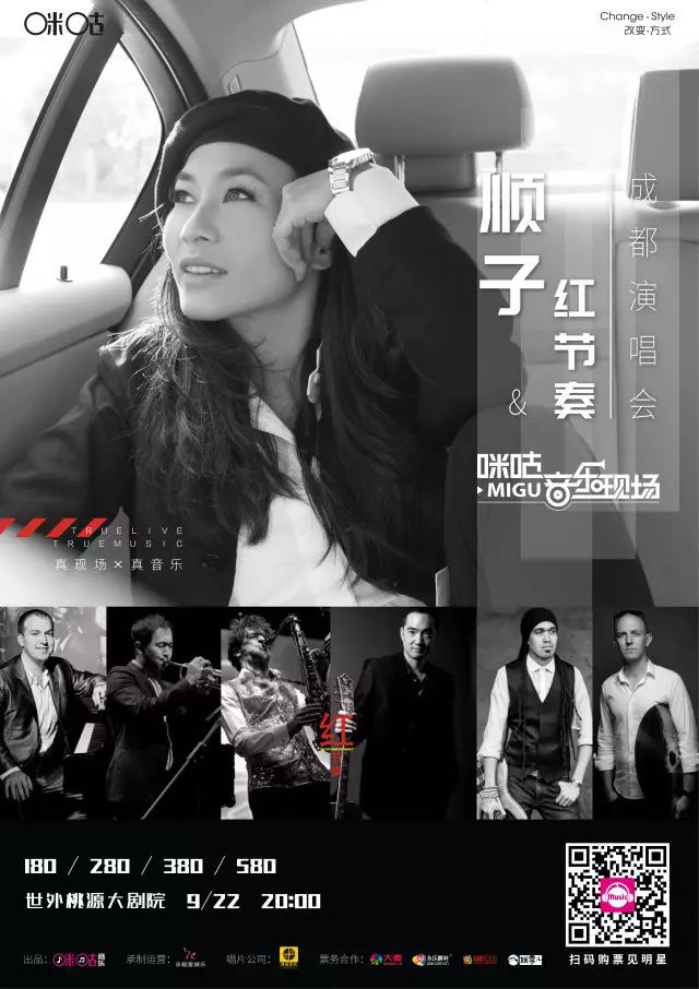 本场演出,是顺子在金秋来临之际,回馈给成都乐迷朋友们的浪漫之礼,她将携手被誉为当今中国最受欢迎的顶尖爵士放克全明星乐队——「红节奏The Red GrooveProject」倾情出演。而顺子最迷人的部份则完全投射在当她面对音乐、演唱时的诚恳快乐,倾听她的音乐,仿佛深陷于一个温暖的拥抱。