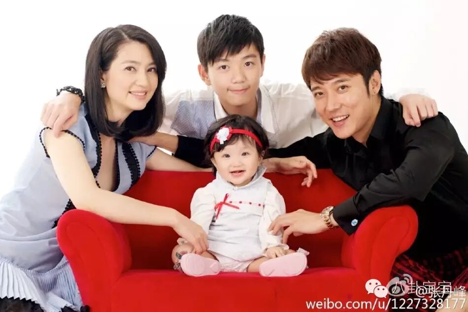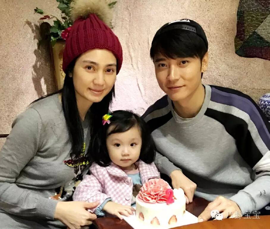 2014年,42岁的洪欣无惧做高龄产妇,为张丹峰生下女儿张晞彤,一家四口乐也融融。