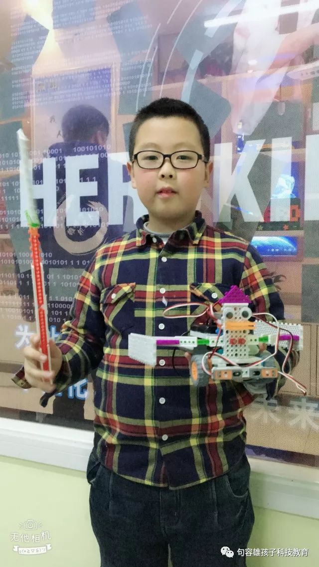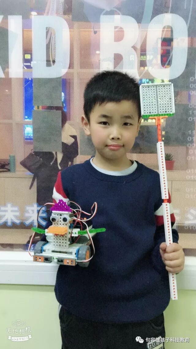 看着你从一个害羞腼腆的孩子,变得积极活泼,热爱课堂,热爱机器人,希望你在未来的日子里,保持对机器人的热爱,坚持的走下去!